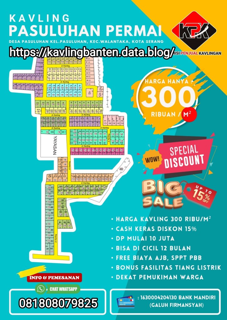 Tanah Kavling Pasuluhan Permai, Walantaka, Serang Banten Apr 21 20222 Mei 2022 Lokasi Info kavling lainnya. Bagikan ini: Bagikan ke X(Membuka di jendela yang baru) X Bagikan pada Facebook(Membuka di jendela yang baru) Facebook Suka Memuat... Terkait Diterbitkan oleh Serang Infos Lihat semua pos milik Serang Infos